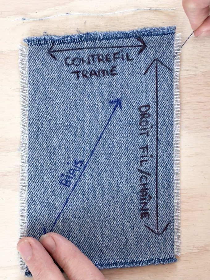 - Julie : Couper dans le droit-fil donne un effilochage plus uniforme.