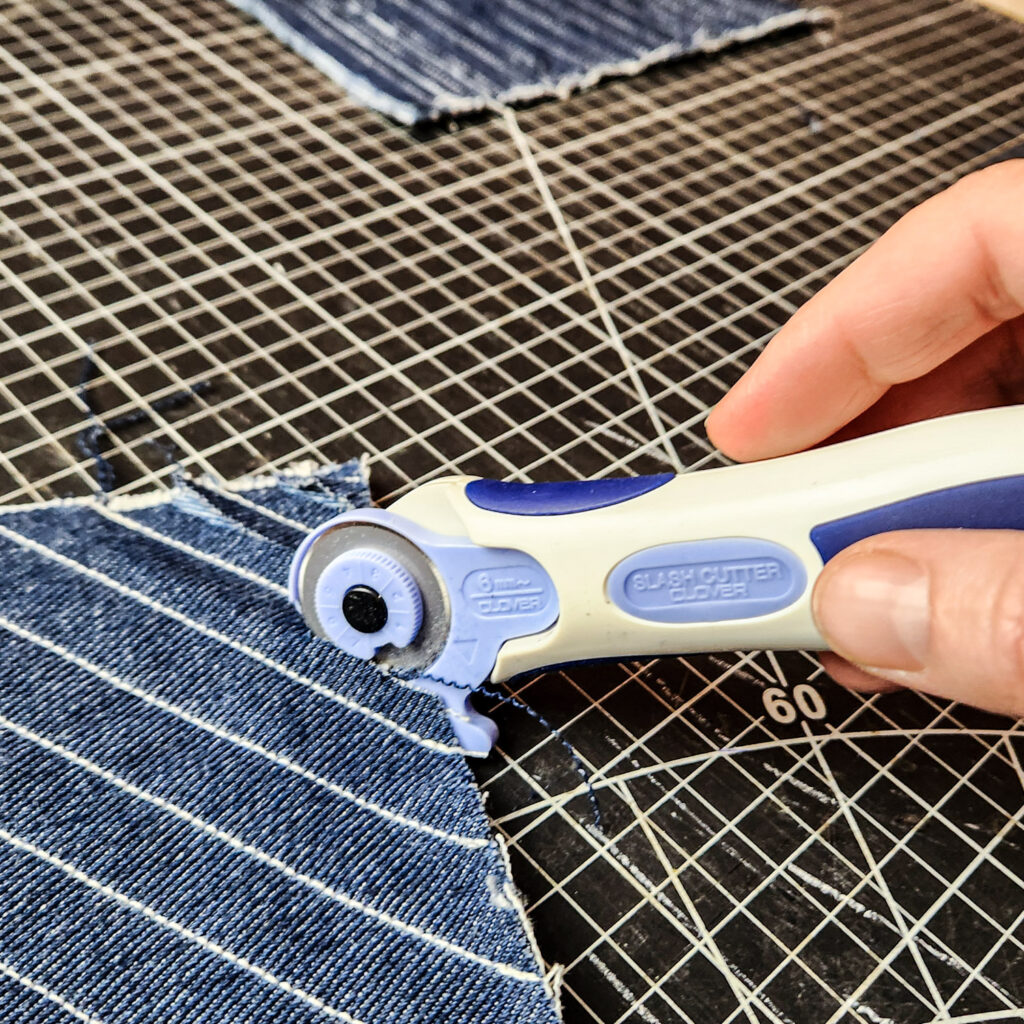 Vous pouvez taillader le tissu avec des ciseaux, mais le couteau rotatif chenille est vraiment plaisant à utiliser.