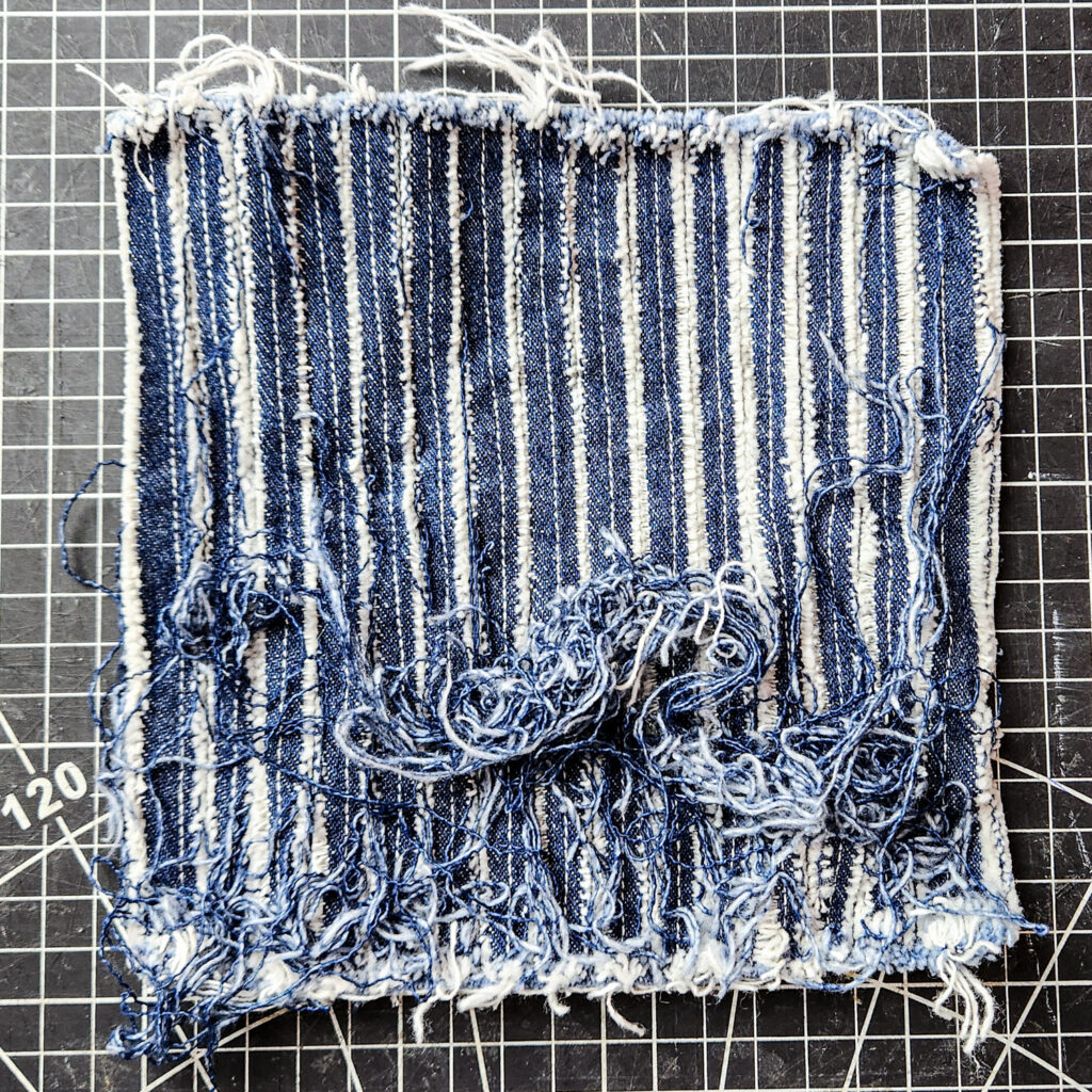 L’échantillon Josy: j’ai effiloché en utilisant le découseur après lavage.