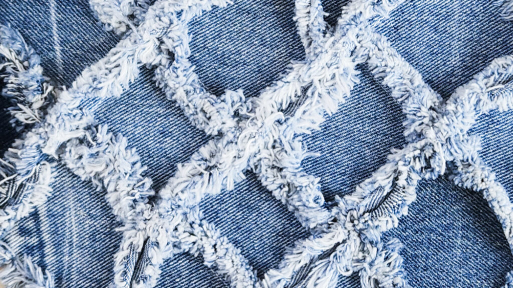 - Lavezr le tissu pour que les bords coupés s’effilochent et deviennent duveteux